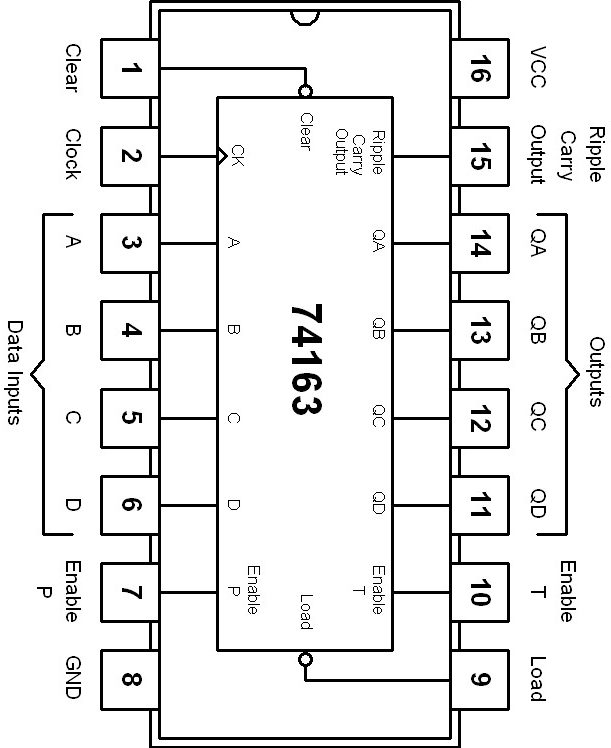 74163 is a high speed synchronous modulo-16 binary type counter. The Ic has two type of count enable inputs and a terminal count output which forms a synchronous multistage counter. It has a single circuit of 4 bit counter and it is a UP counter.
