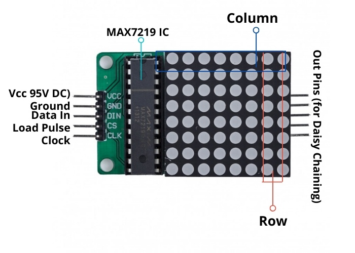 8×8 LED matrix is a two-dimensional array of LEDs.8×8 Matrix has 64 LEDs and it’s 64 pixels or bits display, one LED for each display. By using the LED matrix, any symbol, character, a number of images can be displayed. It is compatible with almost all controllers and processors like Arduino, AVR, PIC, ARM, etc.