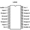 L293D is designed to provide bidirectional drive currents of up to 600mA at voltages from 4.5V to 36V. This IC is capable of driving inductive loads such as relays, solenoid, DC, and bipolar stepping motor, as well as other high-current/high-voltage in positive supply applications.