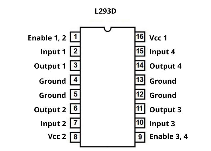 L293D IC is a bidirectional motor driver IC that can drive a DC motor to rotate or run in either direction. This IC can drive 2 motors simultaneously in either direction by 1 IC. It is also known as Dual H-bridge Motor Driver IC. The reason that the L293D driver IC is mostly used is it can drive any time of the motor, like big as well as small.