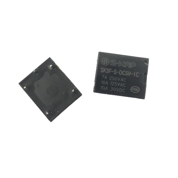 SKAP 5V 7A 5-Pin Sugar Cube Relay Switch (PCB Mount) is an electromechanically operated switch. The term 5V 10A means, with a compatible voltage of 5V it can pass max 7A current. And for the max power rating as it is written on the product 30VDC, with 30VDC it can pass max current 7A. It is a single pole double throw (SPDT) relay, with having a common terminal that connects to either of two others, including two for the coil, such a relay has five terminals.